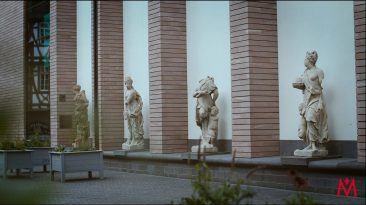 Die Skulpturengalerie am Museumsplatz des Historischen Museums Frankfurt