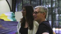 Video Kuratorin Anna-Catharina Gebbers im Gespräch mit Nicole Wermers beim Aufbau des Werks “The Violet Revs” im Hamburger Bahnhof31. August 2020