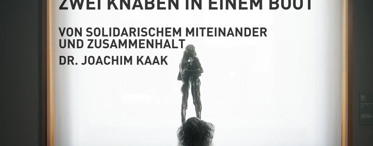 Ausgehend von George Minnes „Zwei Knaben in einem Boot” spricht Dr. Joachim Kaak „Von solidarischem Miteinander und Zusammenhalt”.