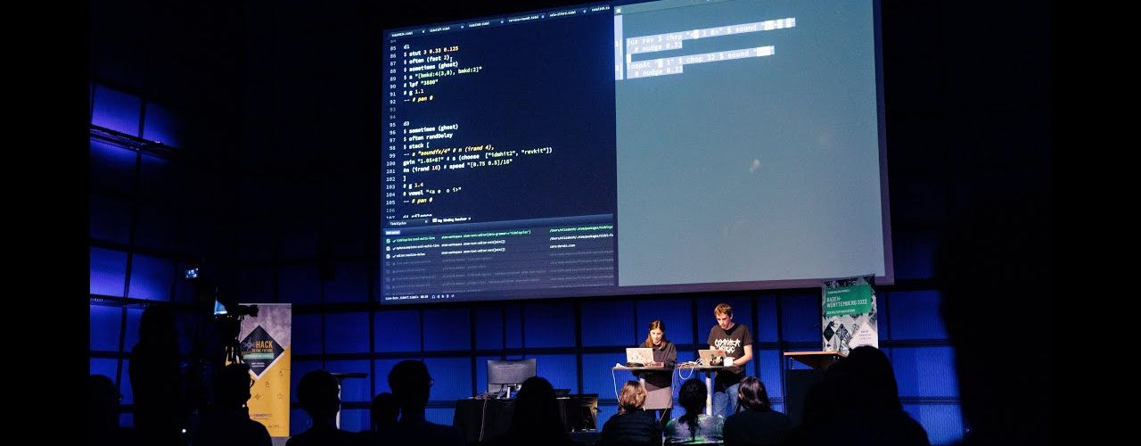 Live-Coding beschreibt eine künstlerische Praxis und kreative Technik, bei der Computerprogramme in Echtzeit und auf der Bühne geschrieben werden. Die Besucher:innen können den Performenden bei der spontanen Produktion von Klang und Bild quasi über die Schulter schauen, während sie ein audiovisuelles Konzertprogramm erleben. Eng mit Mathematik und Informatik verbunden, ist Live-Coding ein leistungsfähiges Werkzeug zur Förderung der künstlerischen Forschung, des digitalen Schaffens und der technologischen Kompetenz.