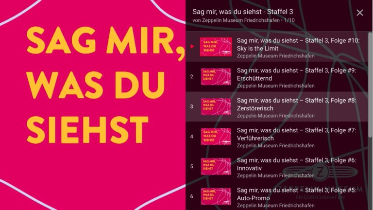 Wie blicke ich auf ein Museumsobjekt? Wie beschreibe ich es? Herzlich willkommen im Zeppelin Museum Friedrichshafen und zum Podcast „Sag mir, was du siehst“. Claudia Böhme ist Historikerin und Kunstpädagogin und stellt uns Fragen aus ihrer Perspektive als blinde Person zu unseren Objekten aus Technik und Kunst.