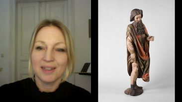 Silvia Müllegger, Kunstvermittlerin im Dom Museum Wien, präsentiert aus dem #DomMuseumWienFromHome eine Skulptur im Museum: ein Heiliger Rochus (um...