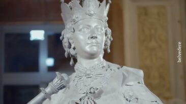 Die menschengroße Statue der Maria Theresia empfängt den Besucher in der Sala terrena des Oberen Belvedere. Sie nimmt Bezug auf die Krönung Maria...