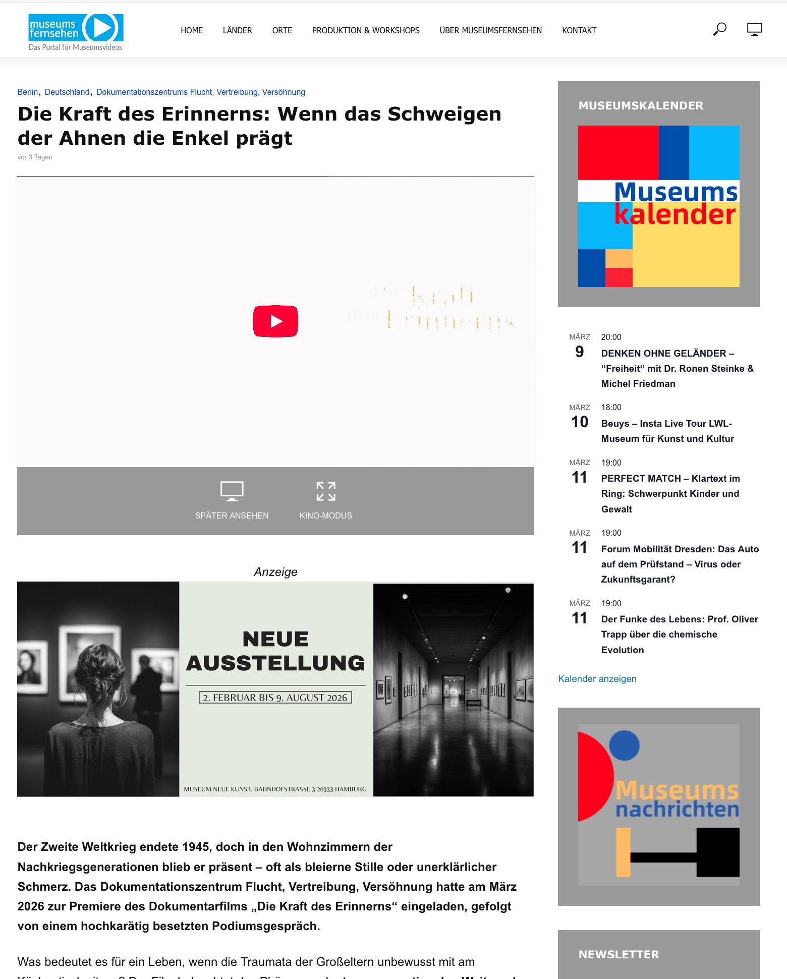Werben auf museumsfernsehen.de