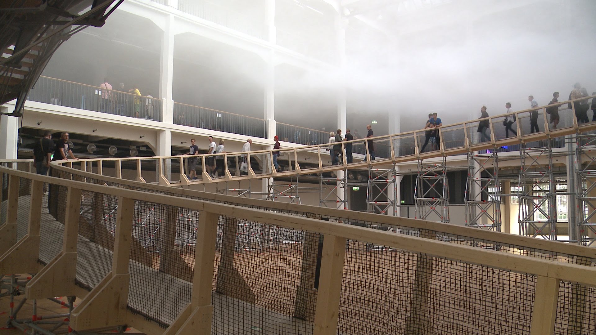 Die Stuttgarter Klimaingenieure Transsolar erzeugen mit dem japanischen Architekten Tetsuo Kondo eine künstliche Wolke im ZKM.